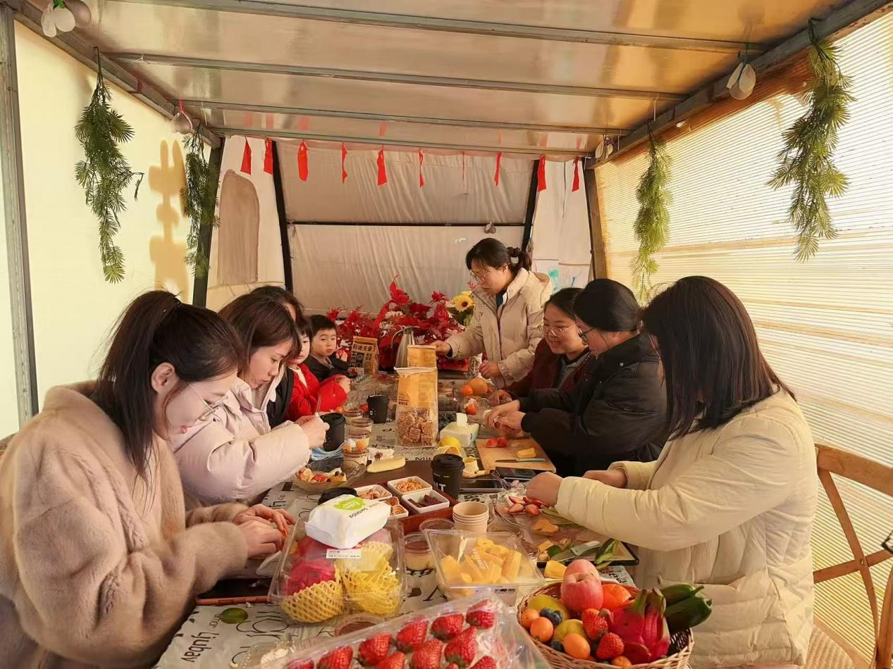 活动的最后是创意果盘制作。女教师们以小组为单位,利用新鲜水果和装饰材料,自由发挥创意,拼摆出趣味造型的果盘。过程中,大家相互协作,笑声不断,展现了多才多艺的一面,也为节日增添了色彩。作品完成后,各小组分享了成果,茶室充满了欢乐与和谐。