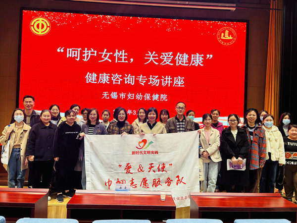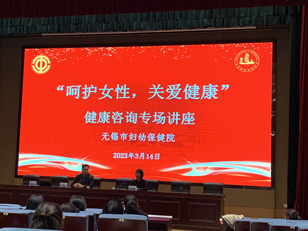 为庆祝第113个“三八”国际妇女节,进一步增强女性健康意识,提高我校康乃馨服务站水平,2023年3月14日下午,无锡市妇幼保健院门诊部主任孙慧带领张昀、王益青、蒋霞医师等一行,来我校开展“呵护女性、关爱健康”科普讲座和医疗咨询,党委副书记杨雪琴、学校女工委、女教工60余人等参加了活动,活动由校工会常务副主席罗嘉军主持。