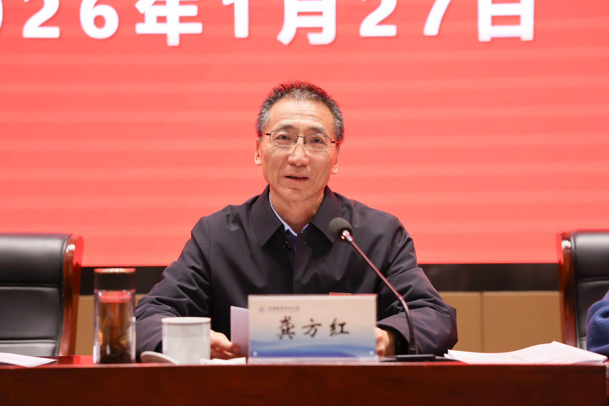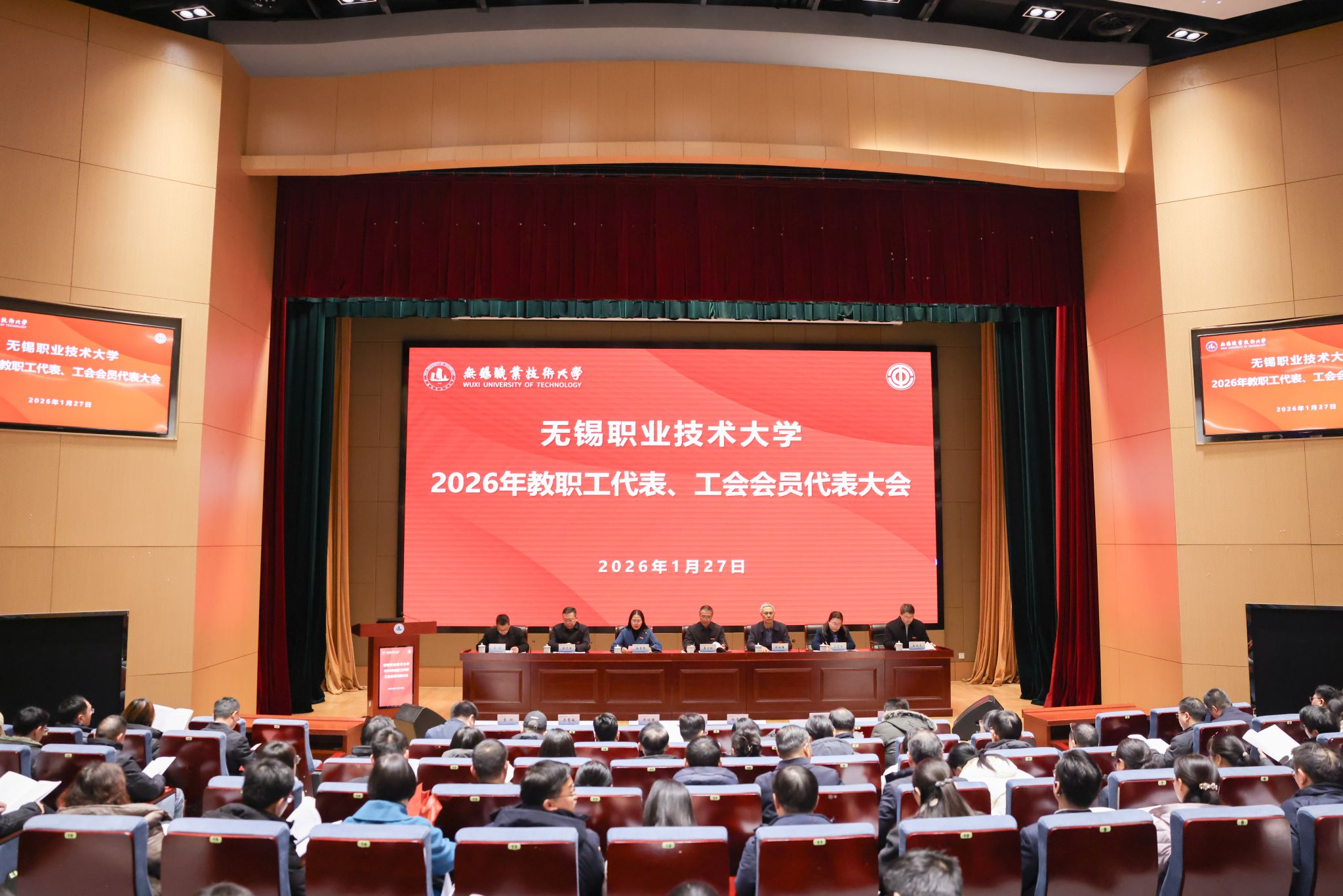 1月27日,我校2026年教代会、工代会在厚德楼一楼报告厅隆重召开,全体校领导、学校教代会代表、工会会员代表以及中层以上干部等180余人参加会议。校党委副书记、工会主席杨雪琴主持会议。