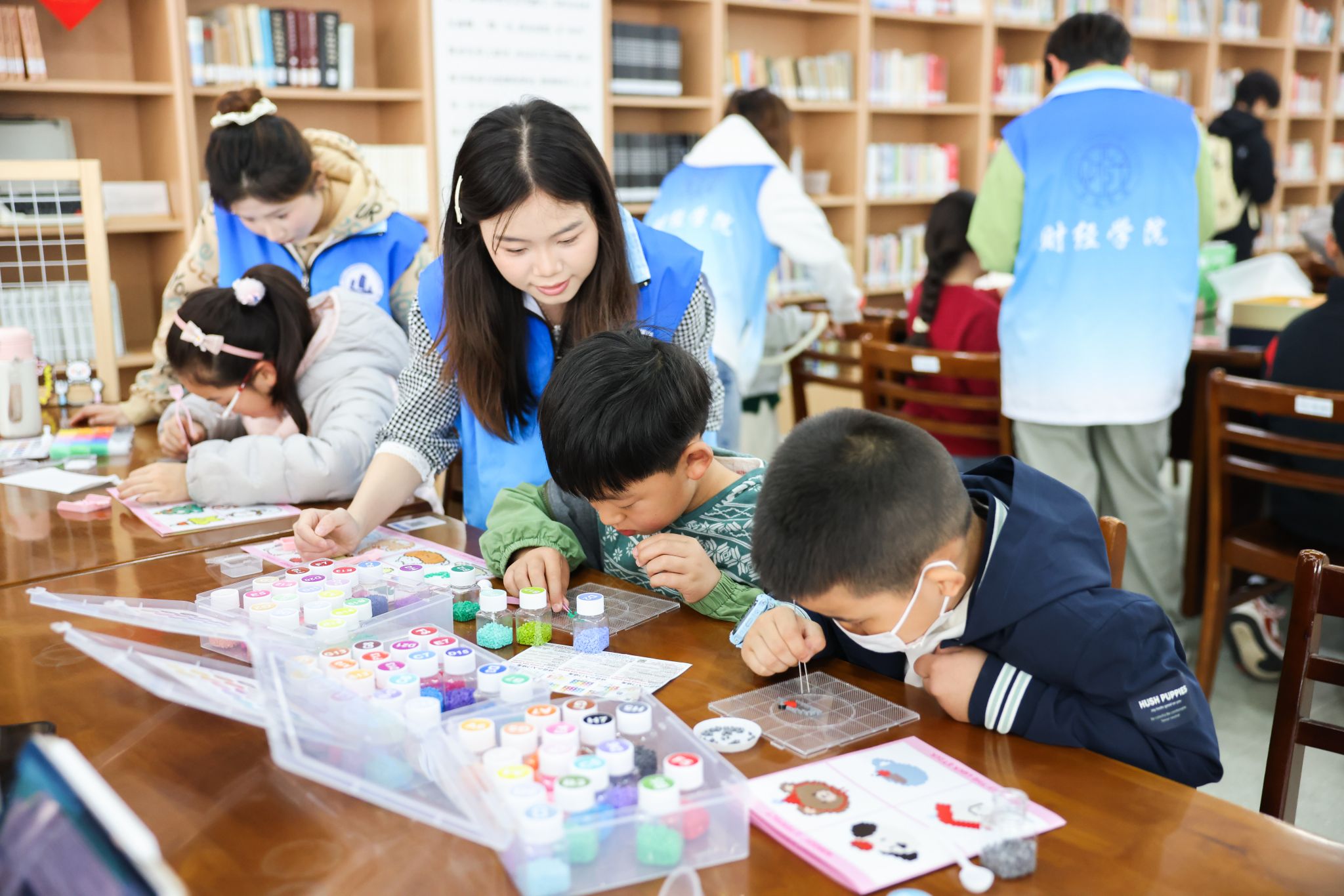 财经学院开设的扭扭棒、拼豆创意手工课程,有效激发了孩子们的创新思维,促使他们将文化中的温情与春日的美好,融入到亲手制作的小物件里。